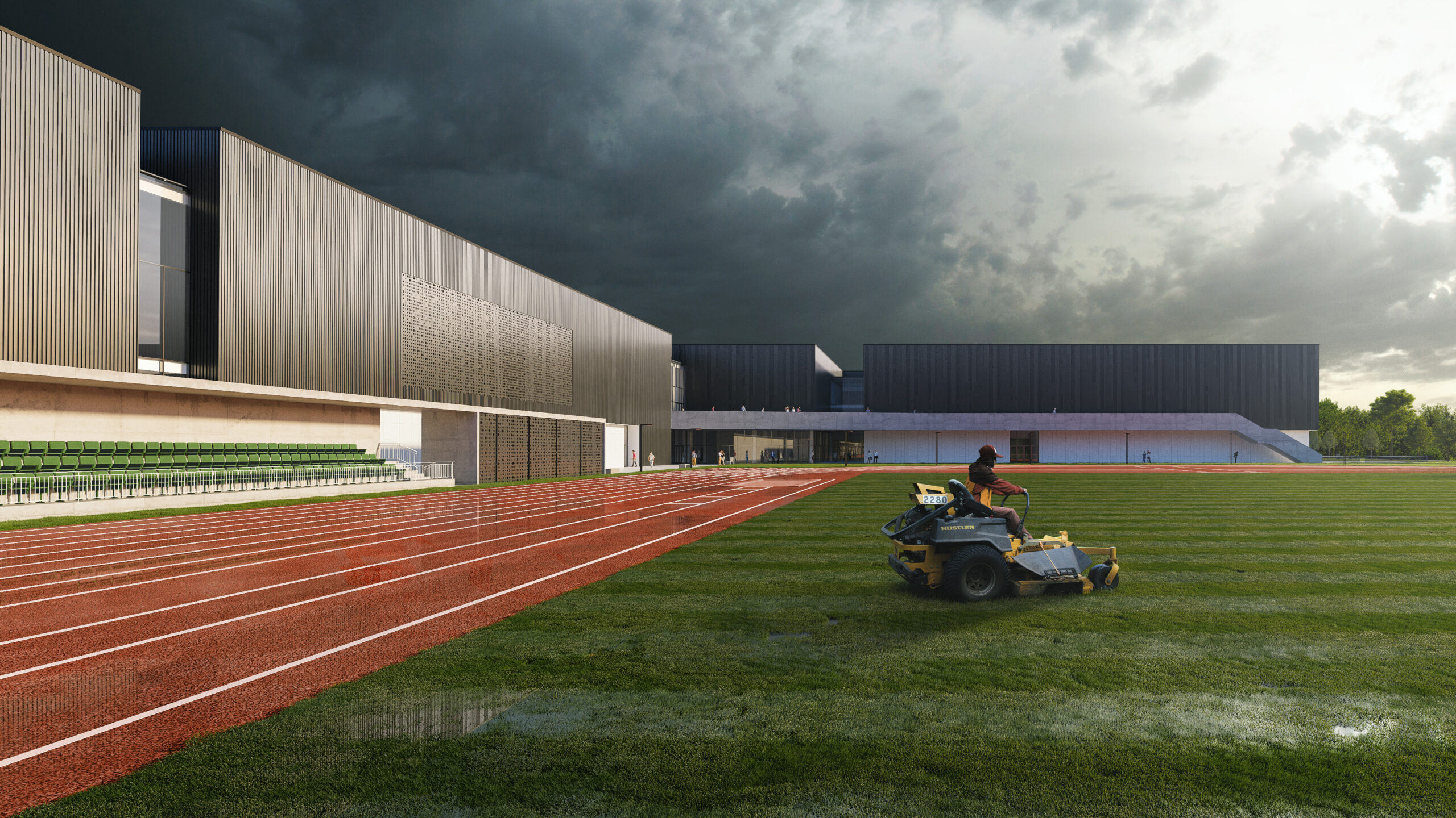 A Budapesti Nemzeti Tornasport Akadémia megújítására készített pályázatunk középpontjában egy egységes, átlátható és jól működő sportkomplexum víziója állt. A tervezés során több beépítési lehetőséget vizsgáltunk, miközben folyamatosan egyeztettünk a Megbízóval és a szakosztályokkal, hogy valóban a sportolók igényeire szabott koncepció szülessen. A javasolt elrendezés egy kompakt, „L” alakú épülettömegben fogalmazta meg az új csarnokokat, amelyek egy közös, jól áttekinthető fogadótéren keresztül kapcsolódtak volna össze. A külső és belső kialakításnál arra törekedtünk, hogy a komplexum egyszerre legyen karakteres és harmonikus: a földszint nyitottabb, üvegezett megjelenést kapott, míg a fölé emelkedő felső szintek egységes „héjként” fogták össze az épületet. A különböző sportágak pályái és terei úgy helyezkedtek el, hogy működésük ne zavarja egymást, mégis egységes rendszert alkossanak. Bár a pályázat nem nyert támogatást, az elkészült terv egy korszerű, átgondolt és szoborszerű megjelenésű sportakadémia vízióját mutatja be.